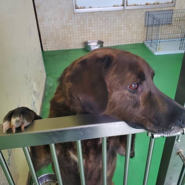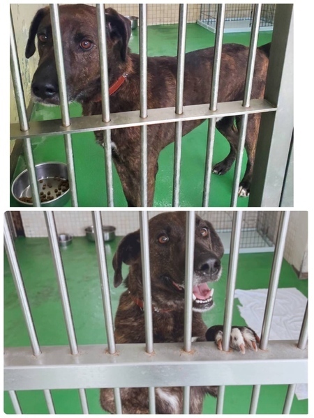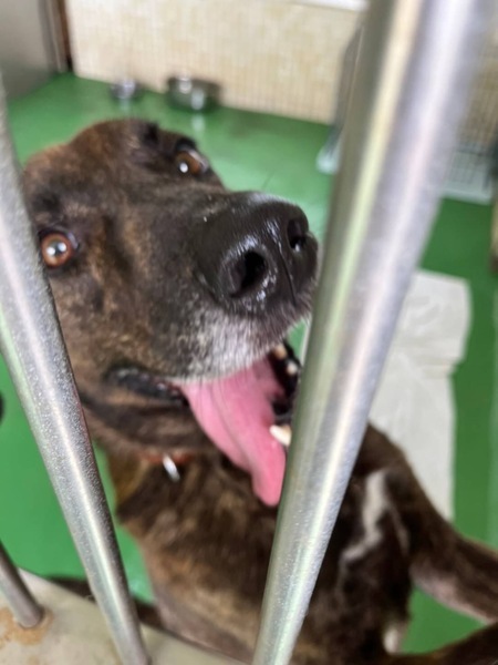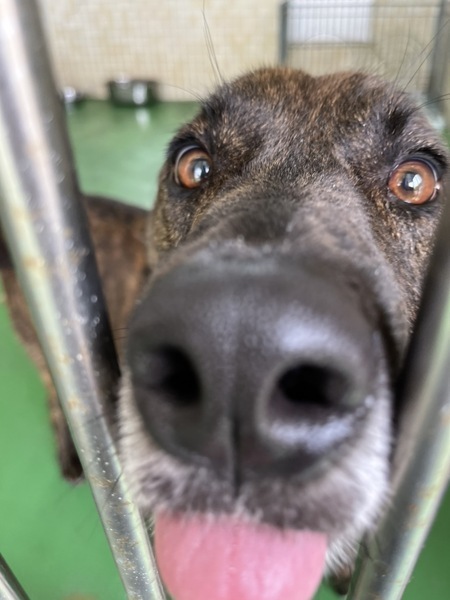 | 特徴(性格など) | ♡大きめの垂れ耳君、プロットハウンドミックスの綺麗なブリンドルでとっても可愛くて人にも他犬にもフレンドリーな男の子ฅ•ﻌ•ฅ 推定になりますが年齢は5歳前後位?で体重は20〜23キロ位に見受けられますฅ•ﻌ•ฅ 収容期限を過ぎて延長もギリギリになりこの子もストレスも溜まってきています( ; ; ) 今までどう生きてきたのか…?知る由もありませんが人が大好き!でかまってちゃん♪の人懐こい性格花マル君です(^^)誰が何処を触っても大丈夫で、お腹も見せて甘える子で凄く可愛いですฅ•ﻌ•ฅ 無理もありませんが、こっちに来てよ〜かまって〜と言うように呼んで元気にワンワン吠えます。 お散歩も大好き!お座りやマテ、お手などは知らないようです。 優しい職員さん方が怖くないよ、今度こそは幸せになれます様にと毎日触れ合いながら、一生懸命にお世話してくださっています。 運動量が必要な子ですが爪が伸びていてお散歩をしてもらっていなかったのか。。分かりませんがエネルギーが有り余っているのでしょう。大喜びでグイっグイに引っ張って歩きます、大きめで若いしかなりパワフル!力が強いのです!猟犬だったのかもです。 ※急な物音や知らない場所にビックリして怖がって、咄嗟に逃げようとする可能性も大いにあり得る事だと思いますし、その時の力、引きの強さも想定し、突然の走り出しや高い塀や壁・柵の飛び越え・急な方向転換や首を振って後退りからの首輪抜け、胴輪抜けにはご用心です!! まだ呼び戻しも覚えていないので、もし逃がしてしまったらピューっと走って行ってしまうタイプかもしれません!(>_<)もし逃がしたらもう捕まえられない!というようにお考えくださいm(_ _)m ※繰り返しになりますがどんな子であっても、慣れてきても、常に、脱走・逃走には充分な注意と最大限の配慮をお願いしております! まだ若いこの子のペースや体力をみながら、躾や毎日朝晩のお散歩など運動の時間をしっかり取ることの出来るご家庭を希望しております♡ 人間が焦らずにゆっくり見守りながら、愛情を持って接し、しっかりとお散歩にも連れ出して行けば、この子はきっと新しい家庭に馴染んでいけると、本当は思い切り甘えて遊んでほしいのだと思います。 辛かったであろう過去があるという点も踏まえ、人は怖くないんだよと、ずっと人を信じてくれる様に広い心でドンとこい^_^と仰って頂ける方、この子をこの先尻尾フリフリ♪ニコニコの笑顔にしてくださる方、いらっしゃいませんか? どうぞ宜しくお願い申し上げますm(_ _)m ⭐️必ず室内飼育で、譲渡後速やかに病院受診、健康診断、(血液検査、尿便検査、ノミダニ・フィラリア予防やシャンプー等)去勢手術、混合ワクチンをする事が可能な、なるべくお留守番が少ない、沢山優しくスキンシップやコミュニケーションで触れ合っていただけるご家庭。 ⭐️フィラリア予防実績、混合ワクチン、狂犬病予防接種の有無は不明です。 フィラリア陽性の可能性も有り得る事となります(>_<) ⭐️室内でのトイレの躾も1からとなります。 未去勢で片足を上げて排尿します。 何かと手がかかり大変ですが(L字型のトイレスペースやペットシートを用意など)覚悟と根気・理解で受け入れて下さる方m(_ _)m ※譲渡後はお早めの去勢手術、その際に歯石除去も一緒にお願いしますm(_ _)m ⭐️出来れば中型〜大型犬の飼育経験があり愛情を持って接することが出来る方、朝晩のお散歩や運動、スキンシップやコミュニケーションに充分時間をあてられる方、 場合により、トレーナーさんやトレーニング教室等も視野に入れてしっかり考えてくださる方。 何卒宜しくお願い致します。 以上の点を踏まえ、この子の置かれている状況、寂しかった、傷ついているであろう心をご理解の上、全て受け入れ、寄り添いながら愛情を注いでくださるご家庭で可愛がっていただきたいと願っております。 保健所収容された全ての子達は身勝手な人間による被害者であり、何も悪くありません( ; ; ) 家族の一員として生涯大切にしてくださる優しいご家庭とのご縁が結ばれ、お散歩から戻っても嫌な檻の中では無い、家族の皆さんとずっと一緒に居られるお家、これからの暑さにも、もう安心して快適に過ごせるお家が見つかりますように☆⭐︎ 幸せになれますように☆⭐︎ こんなに人懐こいのですし、今まで人間を信じ、人間と過ごしてきた事がある筈です。 1日も早く温かな愛情を目一杯注がれながら、元気に幸せに生きてほしいです。 人間より遙かに短い生涯です。 硬いコンクリートの上、暑くて狭い檻の中でひたすら優しい素敵な里親様を待ち続けています。 悲しい事にこの世の中、人間に飼われないと犬は生きていく事が出来ません。 捨てる飼い主、探さない飼い主、医療にかけない飼い主、虐待する飼い主…飼い主を選ぶ事も出来ません。 まだこれからの若いこの子を生涯大切に可愛がって下さる優しい素敵な里親様、どうかお
