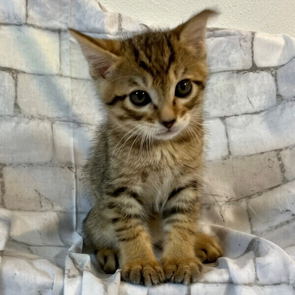 | 特徴(性格など) | 【仮名】デールくん 【性格】5兄妹の中で一番控えめで超マイペースな性格なデールくん☆ みんなが遊んでいる時も一人ゆっくりお昼寝していることも多々あり(笑) 撫でられると気持ち良くてすぐに喉をゴロゴロと鳴らして大音量で甘えてくる様子や 仰向け(へそ天)でぐっすりと寝ている姿は可愛いすぎます。 よく食べてよく寝る元気な男の子です。 まだまだ小さいのでお留守番が少なく 兄妹か同世代の子とのお迎えをお願い致します。 ※1ピキ譲渡不可 |