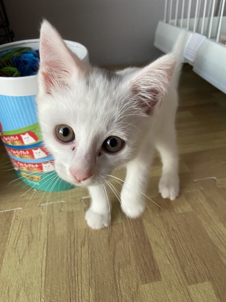 | 特徴(性格など) | 【性格・特徴】 とても甘えん坊で、すりすりゴロゴロします。撫でられるのが大好きです。 遊ぶの大好き!元気な子猫です。 頭に海苔のようなグレーの模様があり、仮名は「おにぎり」としました。 トイレはすぐに覚えました。 一度も失敗なしです。 私が仕事や保護活動などで多忙で家を開けてしまうことが多く、 この子には寂しい思いをさせてしまっています。 ぜひずっとそばにいてあげてほしいです。 【健康状態】 駆虫済 検便3回済、コクシジウム治療済 触診、聴診等でも健康状態問題なし、風邪症状もなし 食欲あり 体重1.4kg 3種ワクチン1回済み ウイルス検査に関して、 保護して間もないことから正確な結果が出ないため 獣医師から現在は必要ない旨言われております。 ですが暫定検査として1度のみ受け、 その際にエイズの陽性反応が出ました。 子猫なので陰転の可能性も十分あるため、 また2-3ヶ月後に再検査をするよう言われております。 先住猫がいらっしゃらないご家庭が良いかと思ってます。 人懐こい子なので、初めて猫を飼うご家庭にもおすすめです。 この辺りはご相談くださいませ。 |