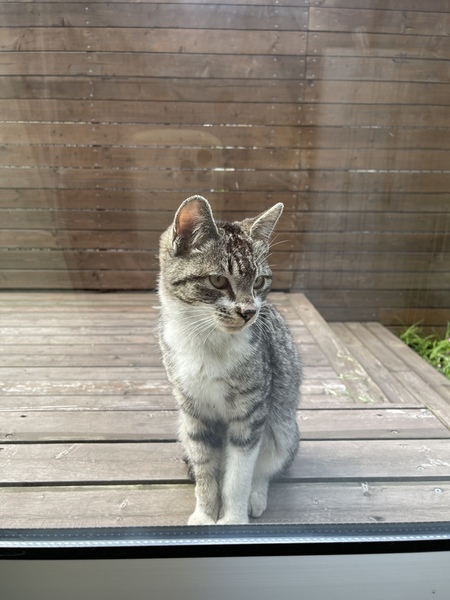 | 特徴(性格など) | キジ白の愛嬌のある顔した男の子。野良ちゃんの割に人馴れしていてスリスリゴロゴロと甘えてきます。まだ若いので遊び盛りでおもちゃで遊んであげるととても喜びます。 | ||