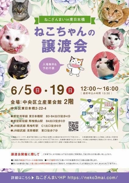 | その他(譲渡条件など) | 11:30より、2階会場入口にて受付を開始します。 受付時に入場予定時間が記入された整理券をお配り致しますので、整理券を受け取った方はお時間になりましたら2階会場入口に番号順にお並び下さい。 ※11:30より早くいらしてもお待ちいただく場所がございません。 また、近隣にお住まいの方や他階フロアのご利用者様にご迷惑となる場合がございますので、受付開始時間にあわせてお越しくださいますよう、何卒ご協力お願いいたします。 ※ねこざんまい譲渡会は、先着順で里親様を決定する譲渡会ではありません。 先に申し込みをした方を優先することもありません。 お話をして、その猫ちゃんに合ったおうちに決めさせていただいております。 12時に開場し、里親様の決定は14時以降となります。 14時以降にご入場の場合、希望の猫ちゃんが決定している可能性があります。 また1頭に対し多数のご希望をいただいた場合、早めに申し込みを締め切らせていただく場合がございますので、予めご了承下さい。 里親様決定は14時以降となります。 その後、迎え入れ準備の説明等のお時間も頂戴しますので、お時間に余裕を持ってご来場下さい。 【新型コロナウィルス感染予防対策について】 譲渡会開催に際し、ご来場下さいます皆様には以下の内容をご理解頂き、ご協力頂けます様お願い申し上げます。 ●入場前の検温とアルコール消毒の実施 ●マスク着用でのご入場=マスク未着用でのご入場はお断り致します ●入場人数の制限をさせていただきます(来場多数の場合は入れ替え制となります) ●時間と人数の制限=密になる事を防ぐ為に入場人数とお時間の制限を設けさせて頂きます その為お待たせしてしまう場合もございます ●会場利用規約により、ご来場者様の連絡先を控えさせていただきます あらかじめご了承下さい。 諸々の制限がございますが、安心・安全な譲渡会運営のためにご理解・ご協力いただきますようお願い申し上げます。 ~~~~~~~~~~~~~~~~~~~~~~~~~~~~~~ ★仔猫ご希望の里親様★ 仔猫ちゃんたちは、まだ体がしっかりしていない赤ちゃんです。 下痢だけでも数時間対応ができなかっただけ死に至る事もあります。 その為、月齢に応じたお留守番時間を設けさせていただいております。 また、子猫ちゃん(6ヶ月未満)の里親様には子猫支援金のご協力をお願い致しております。 ★猫ちゃんとのお見合いは譲渡会で!★ ねこざんまいの猫ちゃんは譲渡会でのお見合いのみとなります。 『この子はいつ譲渡会に参加するの?』『譲渡会場の場所はどこ?』などは、ねこざんまいホームページをご覧ください。 https://neko3mai.com/ ★楽しく猫ちゃんと触れ合って★ ねこざんまい譲渡会は、猫ちゃんも里親様も保護主も笑顔で過ごせる譲渡会を目指しています。 これから20年以上、楽しい時も、悲しい時もいつも傍にいてくれる大切な家族になる猫ちゃんです。 会場には沢山の猫ちゃんがいます。 1匹1匹、触れ合って猫ちゃんとお話してください。 『初めて猫ちゃんを家族に迎える方』 『先住猫ちゃんのお友達を迎える方』など トライアルの仕方や先住猫ちゃんと仲良くなるコツなど経験豊富な保護主やスタッフにお気軽にご相談ください! 猫を愛し、そして猫に愛されている猫好きスタッフと保護主がアドバイスさせていただきます。 ★里親希望のみなさまへ★ ペットではなく、家族一員としてたっぷり愛情を注いでくださるご家庭をお待ちしております。 恐れ入りますが ●学生の方、子猫・幼猫希望の60才以上の方のみのご家庭 ●脱走防止対策にご協力いただけない方 は原則譲渡を遠慮させていただいております。 ●一人暮らし・同棲(事実婚)の方 保護主の希望や猫の年齢・性格等により、ご希望に添えない場合もございます。 参加猫ちゃんは、それぞれ保護主(実際に猫ちゃんを自宅に入れ、保護をしている方)が異なります。 詳しい条件なども異なる場合がございますので、会場内で直接保護主とお話ください。 〖共通条件〗 1.終生飼育 2.完全室内飼い 3.脱走防止対策へのご協力 4.避妊去勢手術 5.契約書類へのサイン 6.定期報告 7.医療費等の負担 当日の猫ちゃんを連れて帰ることはできません。後日、保護主が里親様のご自宅までお届け致します。 その為、移動の際の猫ちゃんの負担を月齢などから考慮し、お届け地区を限定させて頂くこともございますのでご了承ください。 ご理解とご協力のほど宜しくお願い致します。 ☆よくある質問☆ ・譲渡の条件 ・ご負担頂く費用 ・譲渡会の場所等は ホームページに詳しく掲載させて頂いておりますのでご覧ください。 https://neko3mai.com/ メールでのお問い合わせはすぐにご返答出来ない場合がございますのでご了承ください。 ホームページ https://neko3mai.com/ お問い合わせ http://www.neko3mai.com/contact/form_general.html ねこざんまいブログ http://ameblo.jp/neko3mai/ |