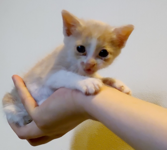 | 里親募集する理由 | 事故に巻き込まれた軽トラックの荷台で荷物に挟まれていたのを発見されました。運転手さんは仔猫が乗っていることに全く気付いておらず、何処から、何時から乗っていたのかもわかりません。 幸い大きな怪我はなく、右足をねん挫しただけでした。今はまだ少し足を上げて跳ねるように歩いていますが、元気に動き回っています。 ご飯もよく食べ、トイレも一人出来ます。 我が家ではすでに5匹保護猫を飼っており、これ以上は飼うことができないので里親さんを探すことにしました。 |