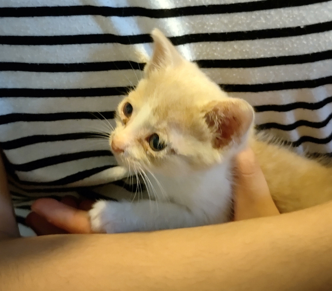 | その他(譲渡条件など) | ノミ取り、駆虫済みです。 離乳済みで、今は仔猫用ウェットフードを食べています。 トイレも一人でできます。 まだ小さいので、お留守時間の少ないご家庭を希望します。 お引き渡しの際はご自宅までお届けいたします。 |