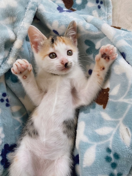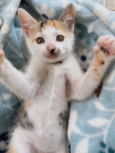 | 里親募集する理由 | 地元の海岸に1匹でいたところを通りすがりの方が保護し、近くの公園へ置いてくると言っていたのでこちらで保護しました。(その方とは散歩中に出会いました) 生後約10日前後でミルクから育てました。 |