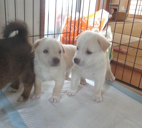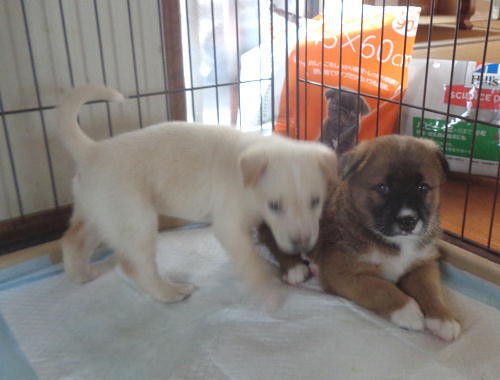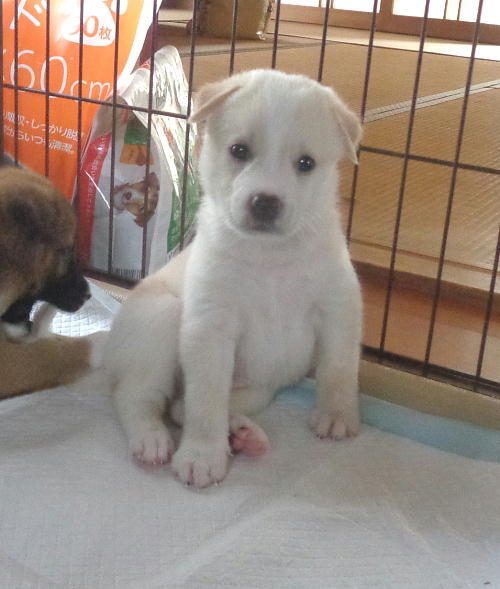 | 特徴(性格など) | 推定誕生日:2022年5月13日頃 性格:人の手によりミルクで育てられましたので人が大好き、甘えん坊くんのオス子犬です。元気に遊び健康状態も良好です。 医療面:健診済み・ノミダニ予防済み その他:成犬時予想は中型犬と思われます。 |