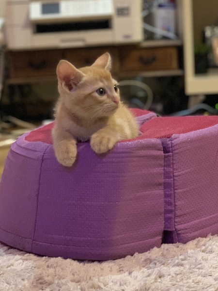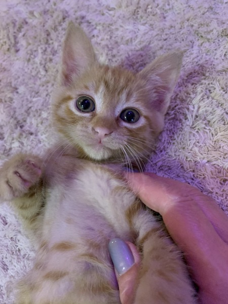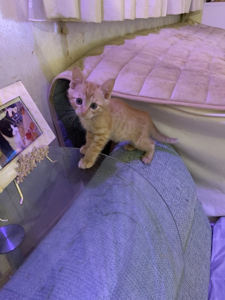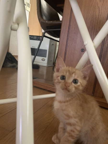 | 特徴(性格など) | 仮名、イケメン君。 年齢、4月20日産まれ。 性別、男の子。 特徴、茶トラ。真っ直ぐ尻尾。 その他、ノミ駆除済。 人慣れして可愛い甘えん坊です。 |