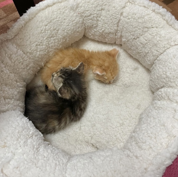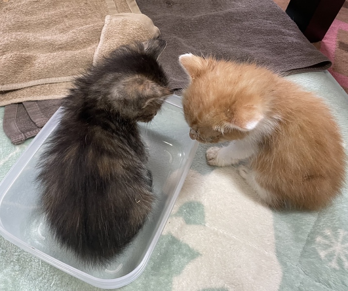 | 特徴(性格など) | 茶トラ♂ ・・・おっとりマイペース キジトラ♀・・・やんちゃで元気 ②匹とも離乳食を開始しており、約3~4時間置きにご飯をあげています。 排泄は猫砂・ペットシートどちらでもできます。 保護した際に駆虫済みです。 また②匹とも結膜炎にかかっており、1日3回点眼薬をしています。 |