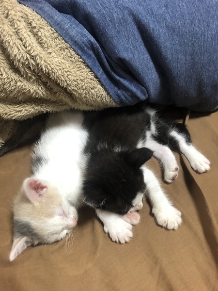 | 特徴(性格など) | ●白黒の女の子→よく食べ、よく遊ぶ元気な子です。足に絡まってスリスリ、ゴロゴロ甘えてきます。 ●三毛の女の子→凄く甘えん坊。寄って来ては鳴いて抱っこをねだってきます。寝る時も人にくっ付いて寝ることが多いです。 現在のご飯はカリカリをふやかした物とウエットフード。 白黒ちゃんはカリカリ 三毛ちゃんはウエットを好んで食べます。 ウエットは、ミャウミャウ、カルカンの魚と鳥どちらでも。カリカリはミャウミャウとモンプチの子猫用。 好みは別れてますが交互に食べらせてますので、これは食べないなど新しい家族の元で困らないようにしております。 |