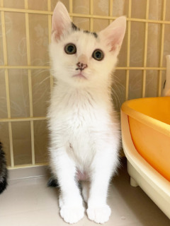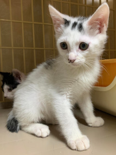 | 特徴(性格など) | ☆★☆★現在お見合い予定がございます☆★☆★ 仮名を『ドラケン』といいます。 白黒斑の男の仔です。 TNR現場より保護されました。 ミルクボランティアさんが乳母となり、愛情を一身に受けて育ちました。 ドラケンには兄弟がいます。 一緒に写っている仔『マイキー』がそうです。 兄弟で猫社会を学びながら、スクスクと成長中★ 甘えん坊で天真爛漫、頭頂部の模様が個性的でしょ? 尻尾は短め。 墨をつけた筆のようで、これまたチャーミング。 愛らしいドラケンにぜひ会いに来てください★ 【医療処置情報】これから実施のも含まれます *健康チェック *3種混合ワクチン接種 (年1回定期的にしております。詳細はお見合い時にお知らせいたします) *ウイルス検査実施(FIV.FeLV共に陰性) *検便実施 *駆虫薬投与(レボリューション、ドロンタール) *マイクロチップ装着 *不妊・去勢手術 |