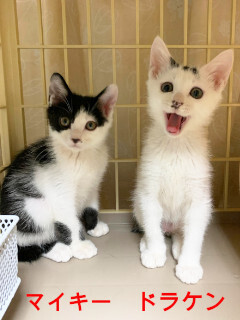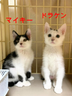 | 特徴(性格など) | ☆★☆★現在お見合い予定がございます☆★☆★ 仮名を『マイキー』といいます。 白黒の男の仔です。 TNR現場より保護されました。 ミルクボランティアさんが乳母となり、愛情を一身に受けて育ちました。 マイキーには兄弟がいます。 一緒に写っている仔『ドラケン』がそうです。 兄弟で猫社会を学びながら、スクスクと成長中★ 左鼻の脇にある小さなホクロがチャームポイントで、女の仔に間違われてしまうことも少なくないのですが、遊びが大好きな元気いっぱいの男の仔です。 甘えん坊で人間が大好き! 愛らしいマイキーにぜひ会いに来てください★ 【医療処置情報】これから実施のも含まれます *健康チェック *3種混合ワクチン接種 (年1回定期的にしております。詳細はお見合い時にお知らせいたします) *ウイルス検査実施(FIV.FeLV共に陰性) *検便実施 *駆虫薬投与(レボリューション、ドロンタール) *マイクロチップ装着 *不妊・去勢手術 |