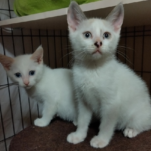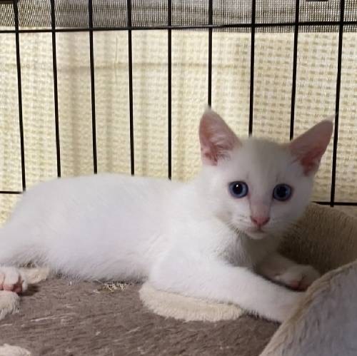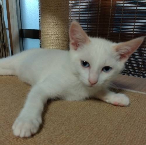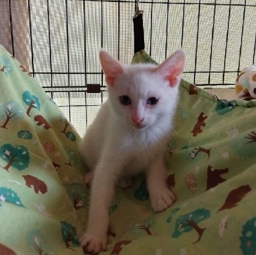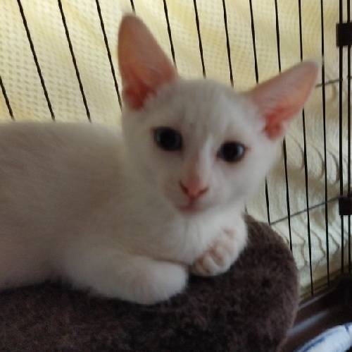 | 特徴(性格など) | 目が綺麗なブルーのシャムMIXの男の子です。 とても元気にオモチャでよく遊びます。 人慣れしてきて恐くなくなったようで明るくなりました。 兄弟の大君と仲良しなので兄弟一緒に迎えて頂きたいと思います。 |