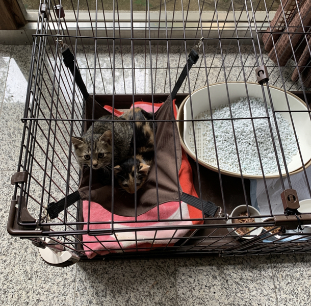 | 里親募集する理由 | 野良猫を保護しましたので、人馴れしていません。 野良猫になる前に1匹でも多く室内猫になって欲しいと子猫を保護してます。 時間をかけて家族になっていただける方、よろしくお願いいたします。 ①6/20 隣の空き家で産まれたようで、歩くようになり当方の納屋で隠れてるところを捕獲しました。 郡山保健所で迷い猫の確認を6月20と21日に 迷い猫ではない確認をとりました。 体格は両手ひらに収まるくらいです。 人馴れしてないので、威嚇しますが、おとなしい性格かもしれません。 ②6/21 カルカン子猫用とカリカリを食べたり、お水を飲んだり出来ました。 まだ食べてるところは見てないです。 おトイレも出来てました。 ゲージ登ったりと元気です。 母親を恋しがって鳴いたりはしてないです。 |