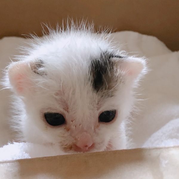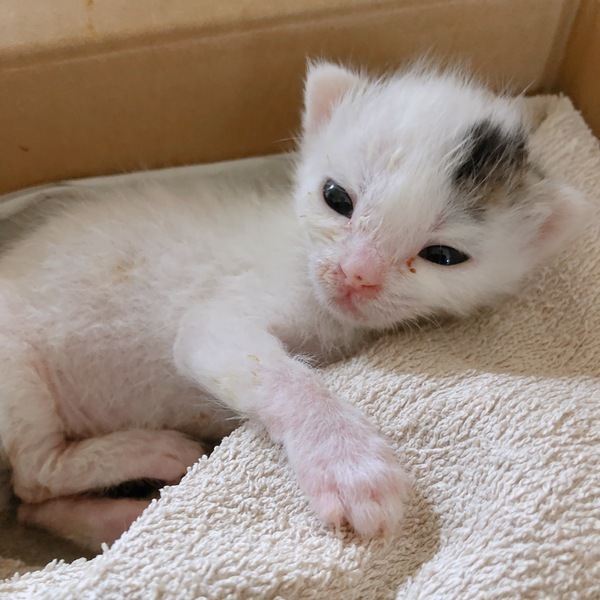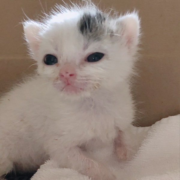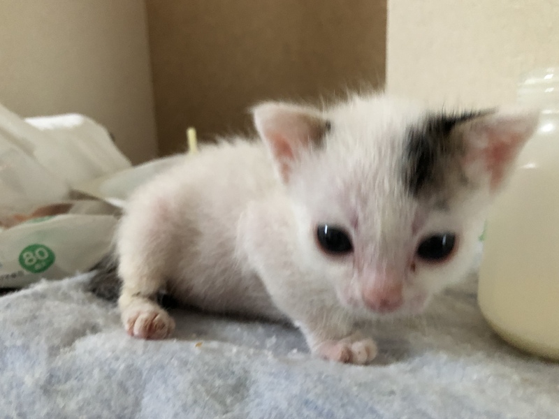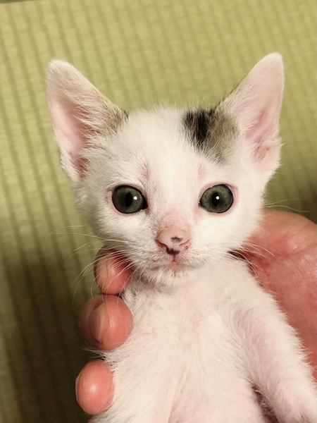 | 特徴(性格など) | 頭に白黒ブチ模様しっぽは黒です。 小さくても元気な男の子! 人が大好きでニャーニャー鳴きながら 駆け寄ってきます。 そしてお膝が大好きでお膝に乗ってゴロゴロ喉を鳴らしながらジャレたりそのまま眠ってしまったりします。 |
