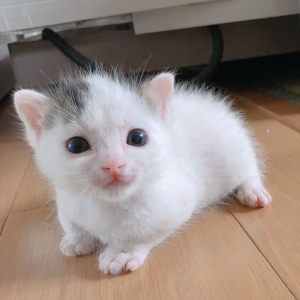 | 特徴(性格など) | 白黒ブチ模様が可愛い忠信くんです 生まれてすぐに保護したからか 甘えん坊で寝ていても人の気配を察知して ハイハイ歩きしながら寄ってきます |