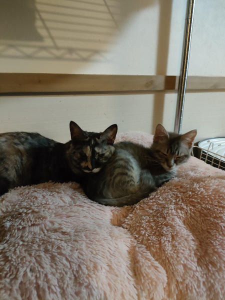 | 特徴(性格など) | サビトラ2匹、メス 年齢は1歳の子と半年の子です。 性格はどちらも大人しく 人馴れもしておりスリスリ大好きで ふみふみも好きです。 1歳の子は先天性の病気があり 耳が聞こえなく首を動かしながら 行動しておりますがお医者様には 命に別状はなく、通院の必要も 薬などの処方もありません。 2匹ともとても仲良しです。 |