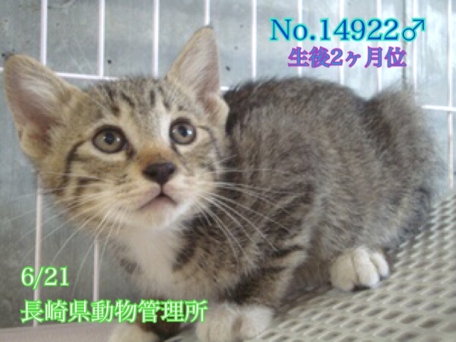 | 里親募集する理由 | まだ生後2ヶ月位、人馴れしている綺麗なキジ白君、クリクリお目々の可愛い鍵尻尾の男の子です♡ 生まれて飼えないと3匹兄妹で持ち込まれ6/21に長崎県動物管理所へ収容されました。 (2匹は譲渡になりました) 突然連れてこられて親猫から離れ兄妹2匹は居なくなりひとりぼっち、どんなに寂しく心細いか。。( ; ; ) 1日も早く愛情に包まれながら温かい家庭の中で幸せになってほしいと願い里親様の募集をさせて頂きます⭐︎⭐︎ 素敵なご縁を待っています! どうぞ宜しくお願い申し上げますm(_ _)m ⭐️県外、遠方の方でも譲渡の条件が合い、良縁に恵まれましたら里親になっていただけますのでどうぞ宜しくお願い致します! ※ ※ 長くなりますが犬猫と里親様の幸せの為にも、募集内容を熟読し、必ずご家族とよく相談をされた上、ご家族全員の賛同を得られてからのお問い合わせ をお願い申し上げます。 ☆家族の一員として迎えて下さる方、「引き渡し方法」にあります【アンケート】にご回答と共にお問い合わせいただけますようお願い申し上げますm(_ _)m ※何か病気や障害が有るのか無いのかも分かりません。 今後体調の急変などもあり得ることを念頭に置き、お迎え後は早急な病院受診が可能な温かく迎えて下さるご家族とのご縁を待っていますm(_ _)m☆⭐︎ ⭐️ 無理もありませんが知らない場所、初めての環境で緊張気味のようで自ら寄ってきたりはしないのですが、問題無く触らせてくれて威嚇や噛みつき、引っ掻きなどは全くありません(^O^)/ 脚先に白ソックスを履いているような柄が特徴的♡ 仔猫用(成長期用)ドライフードを食べる事ができ、猫砂での排泄も出来ます。 まだまだ幼く甘えたい盛りのおちびちゃんです。温かく迎えて下さるご家族とのご縁を待っていますm(_ _)m きっとじきに新しい家庭に馴染んでいけると思います♡ ⭐️当初は2段か3段のケージ飼いから馴らす完全室内飼育で、譲渡後速やかに病院受診、健康診断、混合ワクチン、生後4〜半年頃を目処に去勢手術をする事が可能な、なるべくお留守番の少ない沢山優しく触れ合っていただけるご家庭。 ⭐️完全室内飼育で、譲渡後速やかに病院受診、健康診断、混合ワクチン、去勢手術をする事が可能な、なるべくお留守番の少ない沢山優しく触れ合っていただけるご家庭。 ⭐️新しい環境に慣れるまで、もしかしたらトイレの失敗などあるかもしれませんが覚悟と根気・理解で受け入れて下さる方m(_ _)m ※混合ワクチン、ウイルス検査実績はありません。 エイズ、白血病陽性の可能性も0では無くあり得ることとなります(>_<) 以上の点を踏まえ、この子の置かれている状況、寂しくて不安いっぱいの心をご理解のうえ、全て受け入れ寄り添っていただけるご家庭で終生可愛がっていただきたいと祈っております。 収容された全ての子達は身勝手な人間による被害者であり、何も悪くありません( ; ; ) 家族の一員として生涯大切にしてくださる優しいご家庭とのご縁が結ばれ幸せになれます様にm(_ _)m 残念ながら長崎県は28年、29年度と犬猫殺処分数全国ワースト1位(30年度は3位、令和元年度は4位、令和2年度は1位)です。 ☆猫を飼養飼育していく為には日々、食費、医療費、トイレシート、猫砂以外にも経済的に費用がかかります。 時にはいたずらをして困らせる事もあるかもしれません。 年をとれば人間と同じ様に介護も必要になります。 可愛い可哀想というだけの安易なお気持ちでのご応募は猫にとっても幸せな事ではありませんm(_ _)m 深い愛情と責任を持ち終生完全室内飼育、生後4〜半年頃を目処に確実に不妊手術をしていただける方 の、ご応募をお待ちしております 。 ⭐️ 県外、遠方の方でも譲渡の条件が合い、良縁に恵まれましたら引き出しや空輸、搬送など出来る限りの範囲内になりますがボランティアがお手伝いさせて頂きます。ご相談下さいませ(^O^)/ 搬送時にはエアトラベルキャリーケースかケージが必要になります。 搬送交通費、キャリーは里親様ご負担となります。(キャリーは無料貸出も可能です。後日返送して頂きます) 運命の赤い糸♡ 素晴らしいご縁をお待ちしております(๑•ᴗ•๑)♡どうぞ宜しくお願い申し上げます! https://cat.benesse.ne.jp/withcat/content/?id=88240 https://youtu.be/LTZvSkOQAOo |
