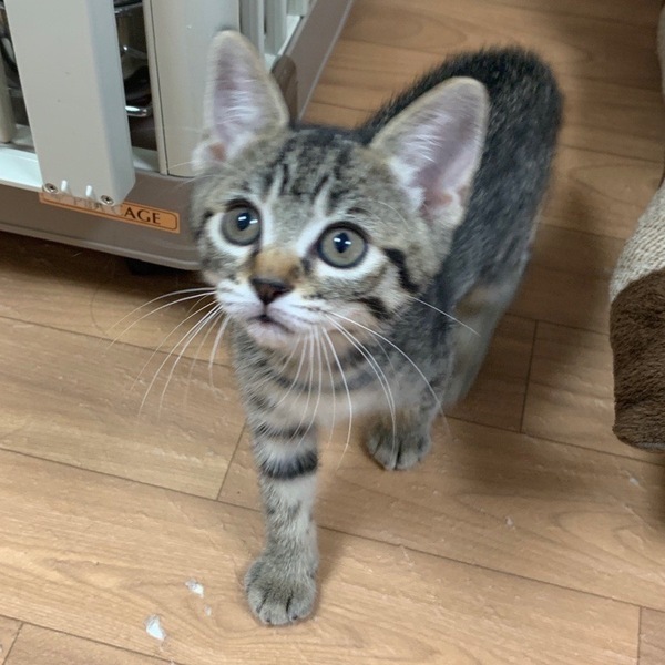 | 里親募集する理由 | 猫が増えている現場で避妊手術のために捕獲したメス猫が、捕獲時にすでに後期妊婦だったため、保護に切り替え室内で出産と子育てをしました。その時に生まれた5匹兄弟のうちの1匹です。 | ||