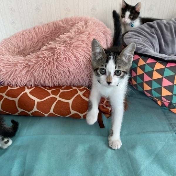 | 特徴(性格など) | 白花ちゃん豆花ちゃん豆太くんと兄妹。みんなで遊ぶ時、いつのまにか違うところで1人遊びしていたりするマイペースな女の子です。 なのでご飯の時も皆んなと違うところでミャーミャー鳴いてご飯ちょうだいと言っていたり…何かと出遅れていることが多いです。 マイペースなのに甘えん坊で、人にくっついて寝ていたりするのが微笑ましく可愛いなぁと思います。まだまだ小さいので性格もこれから進化していくと思いますが、すっかり人馴れしているので安心してお迎えいただけると思います。 兄妹一緒のお迎えにご縁があれば嬉しいです。脱走防止をしっかりしてくださるご家庭を希望します。 |