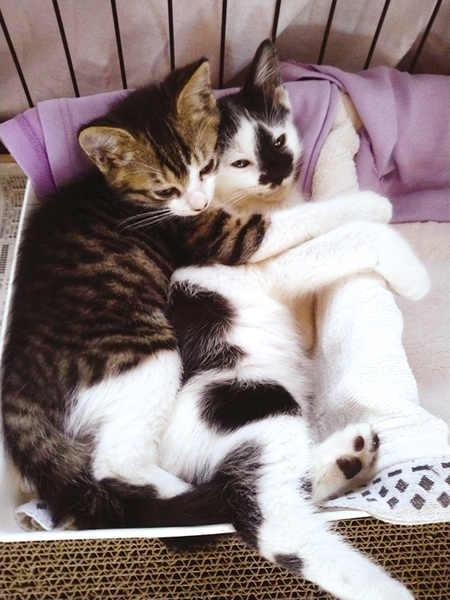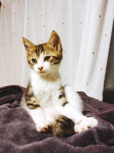 | 特徴(性格など) | 4/18生まれのカワイイふたつのいのち。 ノミ駆除済。検便済。全く問題ありませんでした。 白黒の柄が特徴的な子は、マックス君です。 860gから成長し、現在1060gの元気な男の子! キジ白の子は林檎ちゃんです。 800gから成長し、現在960gの元気な女の子! |