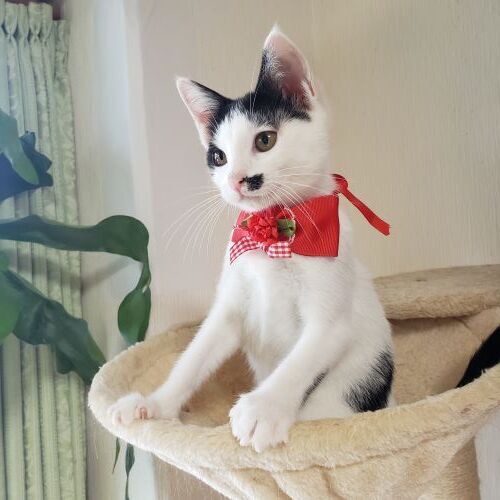 | 特徴(性格など) | ★★★東京・東銀座★猫の譲渡会★駅チカ2分東劇隣り★★★ 子猫ちゃん〜成猫ちゃんまで参加します ※掲載の猫ちゃんとのお見合いは譲渡会場になります。 事前のご予約は必要ございませんので当日会場へお越しくださいませ。 ◇会場のご案内・開催日時等、詳しくは下記をご覧ください。 猫の未来とびらホームページ http://nekonomiraitobira.com/ ★☆★「猫の未来とびら」譲渡会参加予定の猫ちゃんになります★☆★ ◇仮名◇ミントちゃん ◇毛色◇白黒 ◇性別◇メス ◇性格◇ アップル、マリー、レモンの5兄妹です。みんな元気いっぱいで部屋中走り回ったり、じゃれ合って遊んでいます。キャットタワーや段差のあるところにも上がれるようになり、行動範囲が広がっています。現在はルンバに乗って遊ぶのがお気に入りです。性格は母親似でしょうか、穏やかです。兄妹の内、ミントちゃんは優しい顔立ちで白の多い黒白で後ろお鼻の脇の黒模様がチャーミング!尻尾は黒で長くすらりとした真っすぐな尻尾です。2匹一緒にお迎えいただける方が優先になります。 譲渡会に参加予定の猫ちゃん一覧 http://nekonomiraitobira.com/archives/category/next |