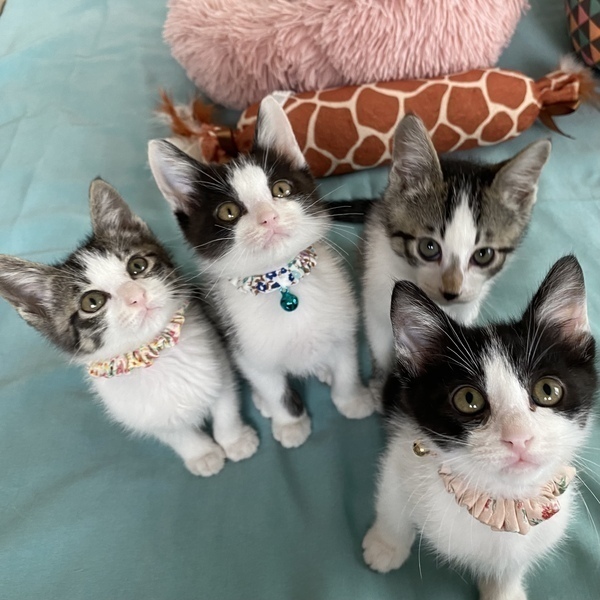 | 特徴(性格など) | 4兄妹の白一点。白花ちゃんと同じく小柄なので守ってあげたくなるような存在です。鼻の部分の白が広いせいもあってかちょっぴり目が離れて見えて、それがなんだかおトボケで可愛いんです♡ 白花ちゃんと豆太くんはよく人の横でくっついて寝ているので、甘えん坊なほう。 まだまだ小さいので性格もこれから進化していくと思いますが、すっかり人馴れしているので安心してお迎えいただけるかと思います。 兄妹一緒のお迎えにご縁があれば嬉しいです。脱走防止をしっかりしてくださるご家庭を希望します。 |