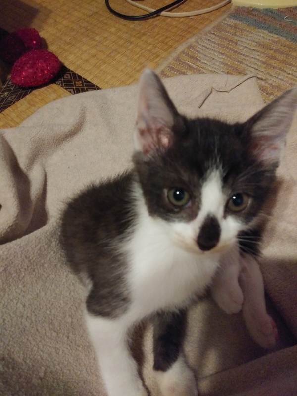 | 特徴(性格など) | 活発で一人遊びも得意です。愛情表現が喉をゴロゴロでは無く手をペロペロなのでなでなでしたい方には違和感かもしれません。 なでなですると手を蹴り蹴りされます。 でも心が通じるとお膝でゆったり寝てます。 表情が可愛らしく見てるとほのぼのします。 先住猫さんがいても仲良く出来ると思います。 一匹でも寂しくはないと思います。 |