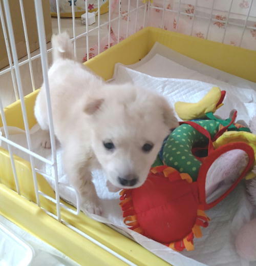 | 特徴(性格など) | 仮愛称:さくらんぼ 推定誕生日:2022年5月13日頃 性格:人の手によりミルクで育てられましたので人が大好き、甘えん坊さん子犬、一人遊びも出来ています。兄弟子犬たちと仲良く遊んでいます。トイレの躾けも覚えました。 体重:1.7kg 医療面:健診済み・駆虫済 ノミダニ駆除済み 初回ワクチン接種済み(6月21日) その他:食欲もあり健康状態は良好です。 |