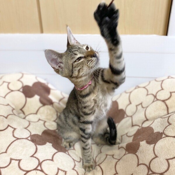 | 特徴(性格など) | もこもこ「あかね」ちゃん❤ 三姉妹の中ではちょっぴり控えめ?穏やかなお嬢さま♪ ゆっくり抱っこしてあげると、うっとり♪な甘えっコ 現在、ドライフードを24時間の置き餌として栄養補給、水分補給のため一日3回パウチを与えています。 <推定誕生日:2022年4月中旬> |