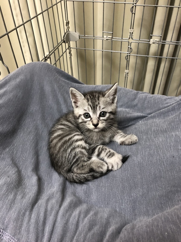 | 特徴(性格など) | 白とグレーのサバトラ猫(魚の鯖のような色の縞模様)。元気な女の子です。 | ||