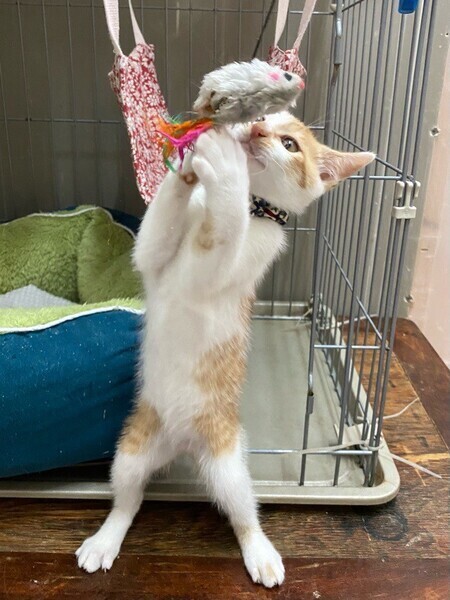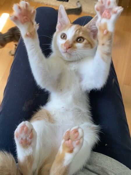 | 特徴(性格など) | 好奇心旺盛でお茶目な「カラ」くん❤ お鼻の模様がちょっと複雑?まだまだ自分からお膝の上に登ったりできないけど、人が大好き❤ ちょぴりシャイでキュートな男のコ♪ 現在、ドライフードを24時間の置き餌として栄養補給、水分補給のため一日2回パウチを与えています。 <推定誕生日:2022年4月始めごろ> |