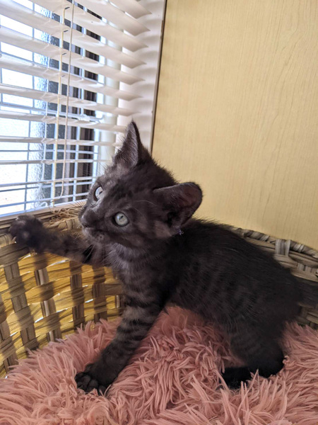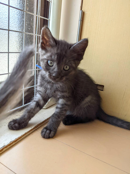 | 特徴(性格など) | 毛色がブラックスモークにトラ柄が入ってます、綺麗な不思議な毛色、性格は遊ぶの大好き甘えん坊さんです。 ワクチン1回済み エイズ白血病検査共に陰性 ノミダニ駆除 駆虫済み |