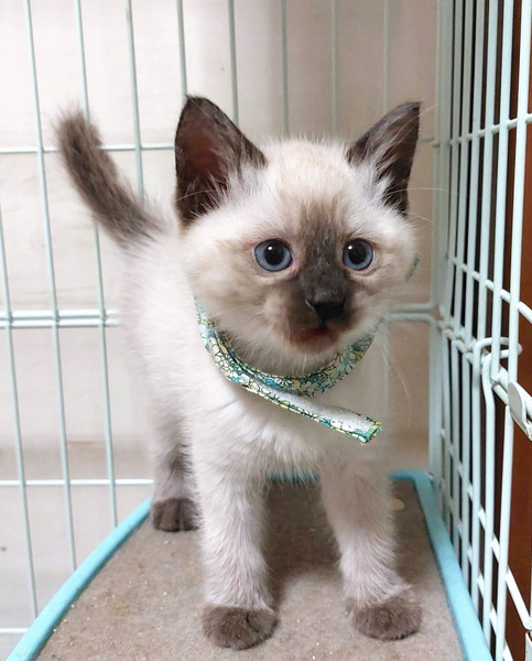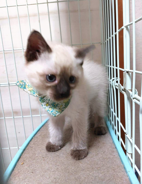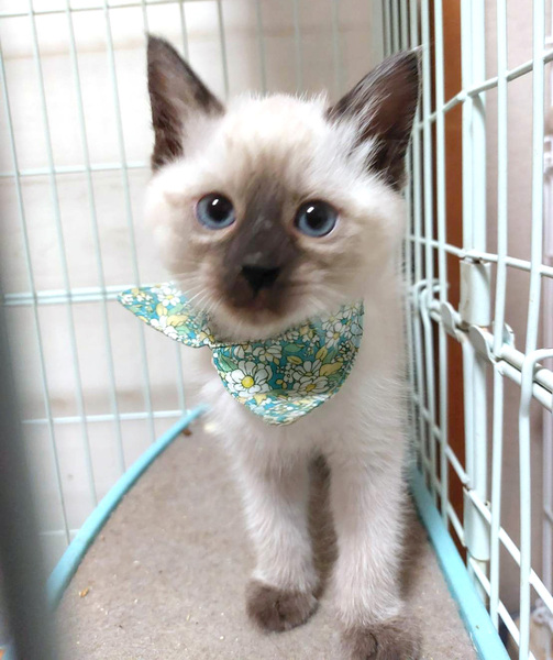| 特徴(性格など) | シャム系のかわいい女の子です。 人に慣れています! 現在、駆虫の治療中です。 治療が終わり次第ワクチン・検査いたします。 |