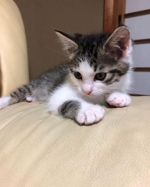| 特徴(性格など) | ◆ハチワレ ◇元気いっぱい走りまわって、遊んでいます ご飯を食べてお腹いっぱいになると膝に乗りたがって、甘えてくれる所もあります |