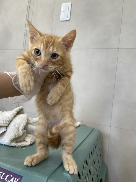 | 特徴(性格など) | まっすぐシッポの美形子猫兄妹です 茶トラ(オス) 黒猫(オス) 麦わら(メス) 親から離して保護したばかりでまだ少し警戒していますが抱っこもシャンプーもできました! 人馴れもしていますのですぐにゴロゴロにゃんこになると思います。 |