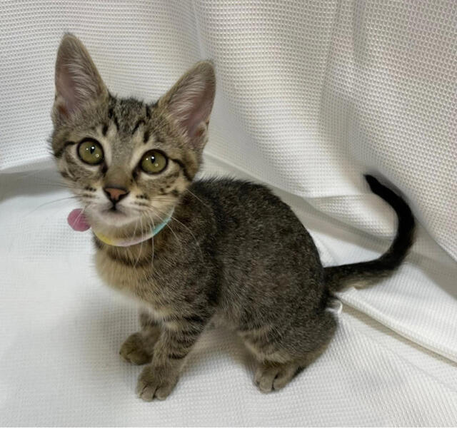 | 特徴(性格など) | 【性格】横浜からレスキューした子猫4兄妹のかわいいかわいいキジトラの女の子です。 人懐っこくて、天真爛漫で、元気いっぱいです。 運動神経抜群で、我が道を行くタイプでもありますが、甘えん坊の一面もありで、堪らなくかわいい子です。 この子達の様子は、YouTubeをぜひ!ご覧ください!https://youtu.be/iORnVWR4YDI とても飼いやすい子達なので、猫飼い初心者のご家庭でもお迎えていただけますが、特にお子様のいらっしゃるご家庭の方は、猫アレルギー検査の有無を明確にしてくださると、私達ボランティアも選考しやすくなりますのでご協力よろしくお願い申し上げます。 子猫ちゃんなので、一日中のお留守番はまだ出来ませんが、ある程度の時間ならばお留守番OKです。パートタイムでお仕事をお持ちのご家庭の方など詳しくは譲渡会スタッフまでお問合せください。 子猫ちゃんを育てる場合は、2匹飼いの方が飼いやすいです。お互いが遊び合って成長して行くので2匹飼いをオススメしております。 マリコちゃんは、特にサチオくん(同じく一緒に譲渡会に参加)と相性が良いので、2匹一緒に迎えてくださる方が優先となります。 かわいい子達なので、ぜひ、よろしくお願い申し上げます。 |