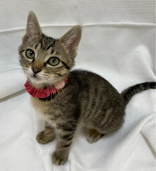 | 特徴(性格など) | 【性格】横浜からレスキューした子猫4兄妹のかわいいかわいいキジトラの女の子です。 人懐っこくて、天真爛漫で、元気いっぱいです。 運動神経抜群で何事にも動じないタイプですが甘えん坊の一面もあるので、そんな仕草が堪らなくかわいいです。 この子達の様子は、YouTubeをぜひ!ご覧ください!https://youtu.be/iORnVWR4YDI とても飼いやすい子達なので、猫飼い初心者のご家庭でもお迎えていただけますが、特にお子様のいらっしゃるご家庭の方は、猫アレルギー検査の有無を明確にしてくださると、私達ボランティアも選考しやすくなりますのでご協力よろしくお願い申し上げます。 子猫ちゃんなので、一日中のお留守番はまだ出来ませんが、ある程度の時間ならばお留守番OKです。パートタイムでお仕事をお持ちのご家庭の方など詳しくは譲渡会スタッフまでお問合せください。 子猫ちゃんを育てる場合は、2匹飼いの方が飼いやすいです。お互いが遊び合って成長して行くので2匹飼いをオススメしております。 ジュジュちゃんは、特にココちゃん(同じく一緒に譲渡会に参加)と相性が良いので、2匹一緒に迎えてくださる方が優先となります。 かわいい子達なので、ぜひ、よろしくお願い申し上げます。 |