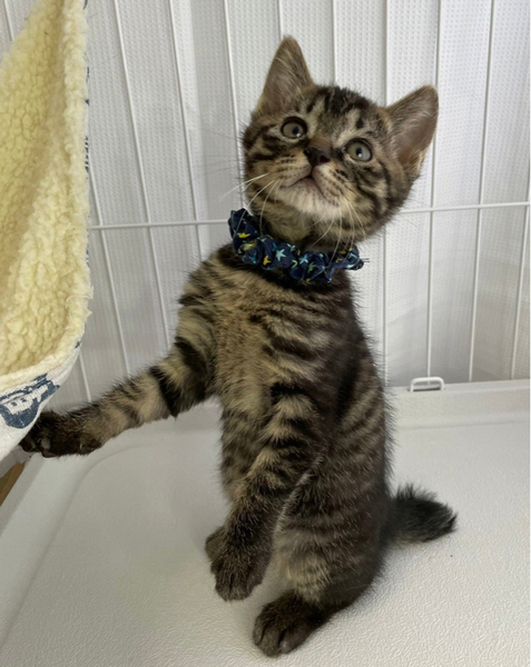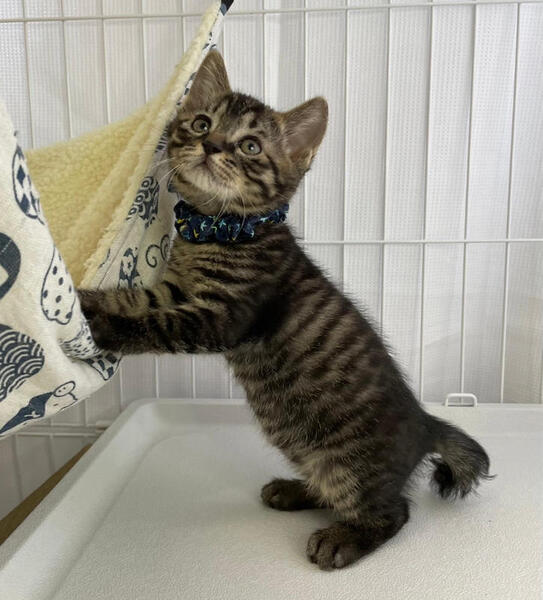 | 特徴(性格など) | 【性格】千葉県勝浦から16匹の子猫をレスキューし、そのうちの10匹を当ボランティア団体で引き受けました。今回ご紹介する子は、その時にレスキューした勝浦の子猫ちゃんです。 かわいいかわいいキジトラ猫ちゃんのご紹介をさせていただきます。 人懐っこくて、天真爛漫で、元気いっぱいです。No. 1の人馴れ度なのは保証致します! 運動神経抜群で、とにかく遊ぶ事が大好き!甘えん坊の一面もありで、お膝の上に乗り上げて甘えてくる仕草が堪らなくかわいい子です。 この子達の様子は、YouTubeをぜひ!ご覧ください!https://youtu.be/hQ8oLrUg9is とても飼いやすい子達なので、猫飼い初心者のご家庭でもお迎えていただけますが、特にお子様のいらっしゃるご家庭の方は、猫アレルギー検査の有無を明確にしてくださると、私達ボランティアも選考しやすくなりますのでご協力よろしくお願い申し上げます。 子猫ちゃんなので、一日中のお留守番はまだ出来ませんが、ある程度の時間ならばお留守番OKです。パートタイムでお仕事をお持ちのご家庭の方など詳しくは譲渡会スタッフまでお問合せください。 子猫ちゃんを育てる場合は、2匹飼いの方が飼いやすいです。お互いが遊び合って成長して行くので2匹飼いをオススメしておりますが、ブルくんの場合は一匹飼いでも全然OKです。 何事にも動じない子であります。 しかし、飼い主側の育てやすさを考慮した場合、2匹飼いとしてオススメさせていただくのは、同じく保護生活を共にしているさと子ちゃん(三毛猫さんで一緒に譲渡会に参加)です。 かわいい子達なので、ぜひ、よろしくお願い申し上げます。 |