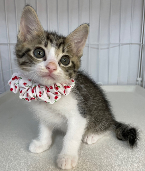 | 特徴(性格など) | 【性格】府中市からレスキューした子猫4姉妹のかわいいかわいいキジ白の女の子です。 とにかく4匹ともソックリで、一見⁉︎見分けが付かない為、パールちゃんは『白のシュシュ』が目印と思ってください! 人懐っこくて、天真爛漫で、元気いっぱいです。 お膝に乗り上げて甘えてくる仕草は堪らなくかわいいです。 この子達を保護した当時の様子からYouTubeにアップしておりますので、巡ってご覧くださるとありがたいです。今後の様子もアップしてありますのでご覧ください。https://youtu.be/az0um6CygnE 最近の様子はこちらhttps://youtu.be/8CGjQ1cPFEk とても飼いやすい子達なので、猫飼い初心者のご家庭でもお迎えていただけますが、特にお子様のいらっしゃるご家庭の方は、猫アレルギー検査の有無を明確にしてくださると、私達ボランティアも選考しやすくなりますのでご協力よろしくお願い申し上げます。 子猫ちゃんなので、一日中のお留守番はまだ出来ませんが、ある程度の時間ならばお留守番OKです。パートタイムでお仕事をお持ちのご家庭の方など詳しくは譲渡会スタッフまでお問合せください。 子猫ちゃんを育てる場合は、2匹飼いの方が飼いやすいです。お互いが遊び合って成長して行くので2匹飼いをオススメしております。 パールちゃんは、特にダイヤちゃん(同じく一緒に譲渡会に参加)と相性が良いので、2匹一緒に迎えてくださる方が優先となります。 かわいい子達なので、ぜひ、よろしくお願い申し上げます。 ※譲渡会にて晴れて里親決定となったお宅にお届け出来るのは、2回目のワクチン後となりますので、お届けはしばらく先になる事をご了承ください。 |