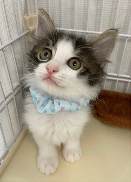 | 特徴(性格など) | 【性格】まだ目の開かない生後約一週間足らずで、埼玉県からやってきたキジ白乳飲み子4兄妹達でした。 預かりさんがミルクを与え、スクスクと成長をし、お陰様で全匹無事に健康に育つ事ができました。 初めて目が開いた時は、人間でした。なので、この子達は人間の子供みたいなものです! 人懐っこくて、天真爛漫で、元気いっぱいの子達ですが、だいすけくんは若干へたれんちょなようです。 だいすけくんは、若干半長毛?譲渡会場では、水色のシュシュを付けているのがだいすけくんだと思ってください。 甘えん坊さんで、お膝に乗り上げて甘えてくる仕草は堪らなくかわいいです。 この子達を保護した当時の様子からYouTubeにアップしておりますので、巡ってご覧くださるとありがたいです。今後の様子もアップしてありますのでご覧ください。https://youtu.be/GaZUdiBsA94 とても飼いやすい子達なので、猫飼い初心者のご家庭でもお迎えていただけますが、特にお子様のいらっしゃるご家庭の方は、猫アレルギー検査の有無を明確にしてくださると、私達ボランティアも選考しやすくなりますのでご協力よろしくお願い申し上げます。 子猫ちゃんなので、一日中のお留守番はまだ出来ませんが、ある程度の時間ならばお留守番OKです。パートタイムでお仕事をお持ちのご家庭の方など詳しくは譲渡会スタッフまでお問合せください。 子猫ちゃんを育てる場合は、2匹飼いの方が飼いやすいです。お互いが遊び合って成長して行くので2匹飼いをオススメしております。 だいすけくんは、特にほっぺちゃん(同じく一緒に譲渡会に参加)と相性が良いので、2匹一緒に迎えてくださる方が優先となります。 かわいい子達なので、ぜひ、よろしくお願い申し上げます。 ※譲渡会にて晴れて里親決定となったお宅にお届け出来るのは、2回目のワクチン後となりますので、お届けはしばらく先になる事をご了承ください。 |