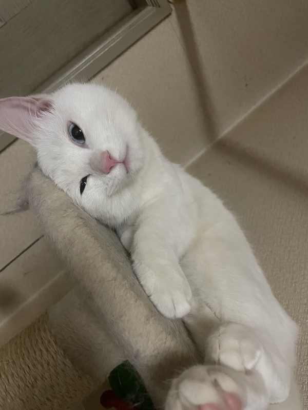 | 特徴(性格など) | 青目、白猫、甘えん坊、食いしん坊、元気 | ||
