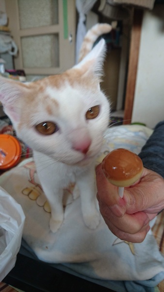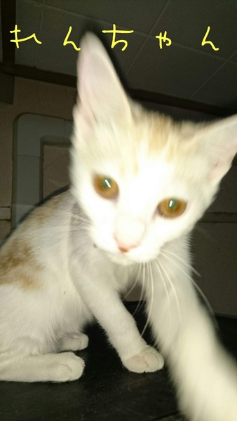 | 特徴(性格など) | 名前はレン 色は白色と茶色。推定生後2ヶ月くらいの頃に近所で虐待されているところを見つけて保護した猫ちゃんです。目の色がイエローなのが特徴。 性格はとても人懐っこく、好奇心旺盛のやんちゃっ子です。おもちゃで遊ぶのが大好きな子です。 ご飯は主にカリカリが大好きな子ですが、ウエットタイプのはあまり食べません。 |