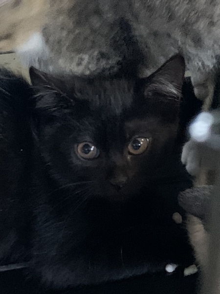 | 特徴(性格など) | 茶色の目が綺麗な黒猫です。元気いっぱいですが、少し怖がりな面もあるようです。 ご飯はカリカリをもりもり食べます。 |