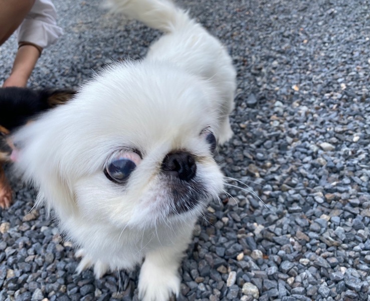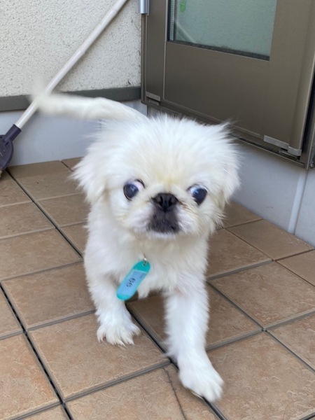 | 特徴(性格など) | ペキニーズ 体重4.8㌔ とっても甘えん坊で抱っこされるとしっぽをブンブン振ります。 他のわんこにも遊ぼう?とちょっかいをかけることもありますが、声をかけるとすぐにやめます。 お外が大好きで、嬉しそうにテンテン歩く姿はとっても愛らしいです。 食べることが大好きで、好き嫌いなく食べてくれます。 人間大好きで性格もしぐさもとってもかわいいです。 乾性角膜炎のため、現在眼軟膏をつけています。 |