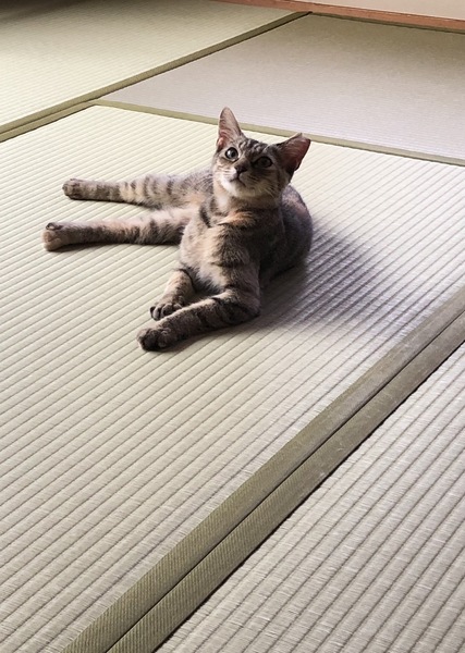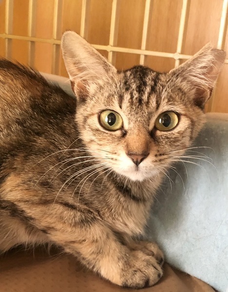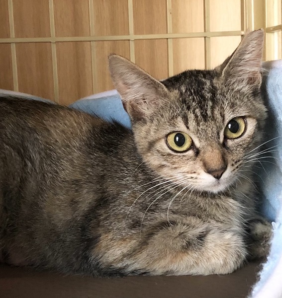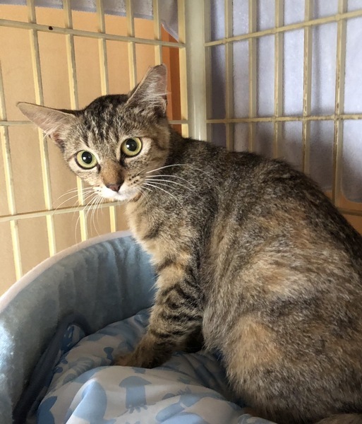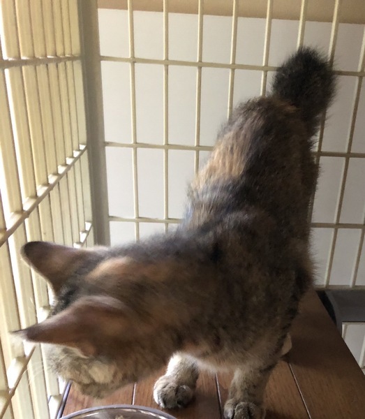| 特徴(性格など) | おとなしい、少し臆病な子です。 顔はキジトラ、身体はサビで尻尾は短めです。 さくら耳です。 |