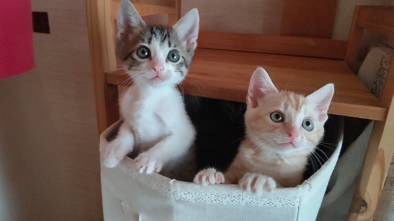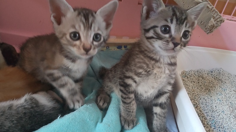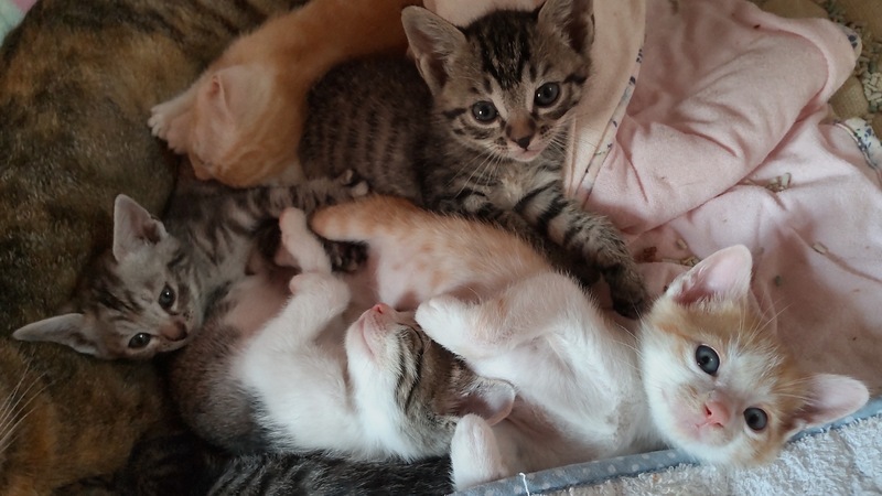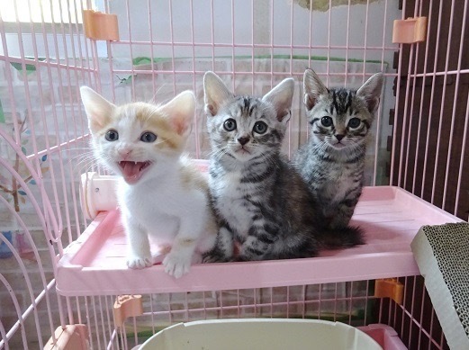 | 特徴(性格など) | 茶白、茶トラ、キジトラ、ギジシロ柄の6兄妹です 仲良く元気いっぱいに遊んでいます |