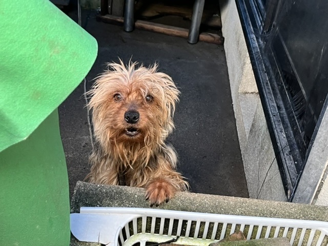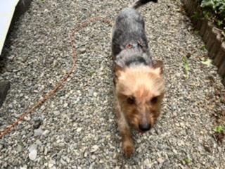 | 特徴(性格など) | ■特徴 仮名:クーちゃん ヨークシャーテリア♂ 推定5歳 体重6.3キロ 血統書のないデカヨーキーです。 ■性格・暮らし ・活発で、人間が大好きな子です。 人が近づくと大喜びで、シッポが扇風機のようにぐるぐる回ります。 ・男の人は少し怖いようで、唸る時があります。 ・子犬の時は室内で飼われていましたが、大きくなると外に出され、じめじめした薄暗い寝床で、触ることも遊ぶこともされず過ごしてきました。 ・最初だけ唸りますが、すぐに触れます。美容室でも、口輪なしでシャンプーからカットまでできました。 ・保護時は毛が絡まりひどい悪臭でしたが、丸刈りにして今は快適そうです。 ・おすわりやまて、ふせ等を練習中です。食べるのは大好きですが、ちゃんと「まて」できます。 ・興奮しやすく、吠え癖があります。今、落ち着いて散歩や留守番が出来るように勉強中です。 ・散歩は少し引っ張りますが、誘導すれば着いてきてくれます。 ・他の犬とは散歩ですれ違う程度で、あまり接したことがありません。 ・現在我が家には保護猫が多数おり、室内にスペースがないため、涼しい場所を確保した上で外にて生活してもらっています。 トイレはお散歩まで我慢しようとしているので、室内でも生活はできそうです。 ・スペースを確保できたら、室内で生活する練習をしようと思っています。 ■保護後行った医療行為 ・ノミダニ駆除 ・血液検査 ・フィラリア抗原検査(+) 症状は重度ではなく、投薬治療中です。 ・去勢手術は約1か月後、様子を見つつ行います。 ・ワクチン接種予定 |