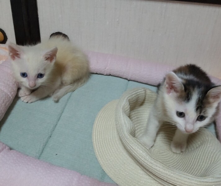 | 特徴(性格など) | 白(オス) 三毛(メス) 2頭ともとても元気です。 |
