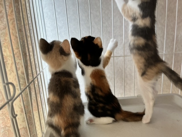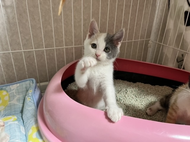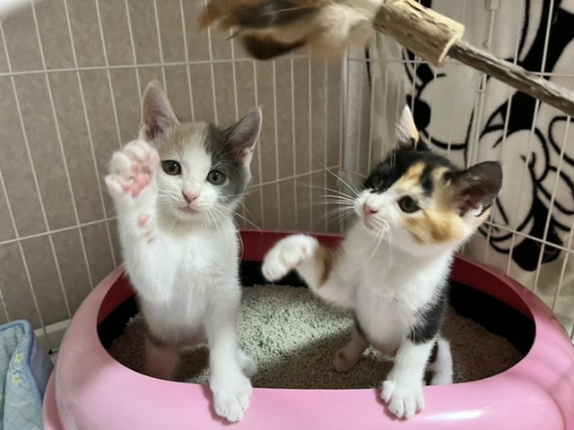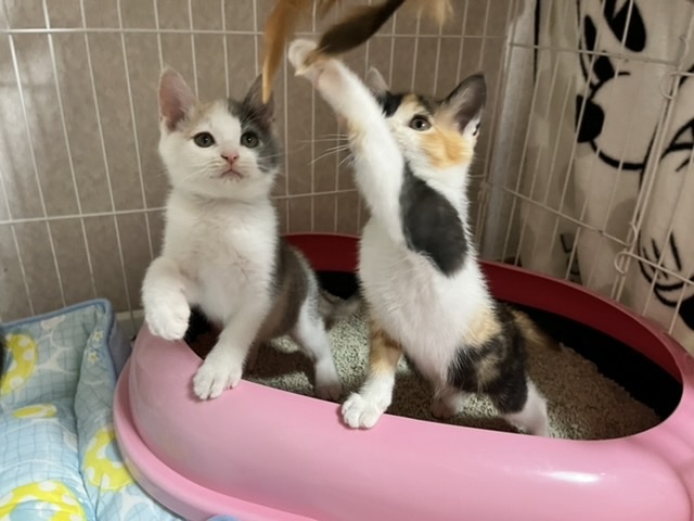 | 特徴(性格など) | ◎外見など 色の薄い三毛猫です。 とても綺麗な毛色をしています。 タレ目で幸薄そうな顔。 つぶらな瞳がとても可愛らしいです。 尻尾は長くて真っ直ぐです。 兄弟の中では1番大きいです。 まだ少し痩せているので、ご飯をたくさん食べて元気になってもらっています。 ◎性格 びびりですが、おっとりしていて鈍臭そうです。 兄弟が大好きで、いつも誰かとくっついています。 まだ怖がっていますが、撫でると気持ちよさそうに目を細めます。 遊ぶのは大好きで、必死に追いかけて手でおもちゃを捕まえています。 とても可愛らしいです。 ◎医療行為など ノミダニ駆除 猫エイズ・白血病は、まだ検査結果がきちんと出ない月齢の為行っておりません。 里親希望者様からご希望あれば実施します。 |