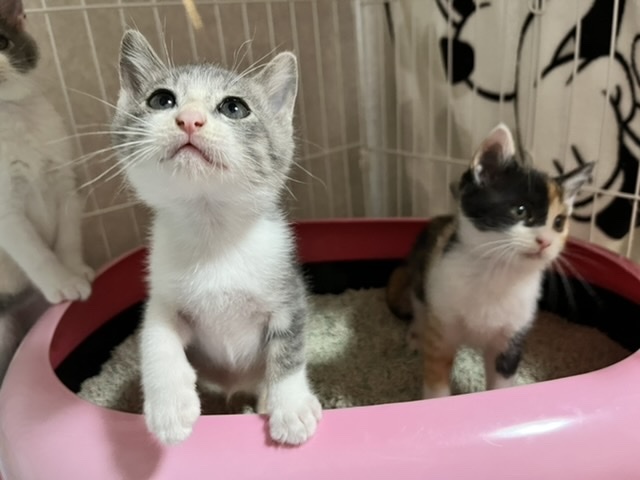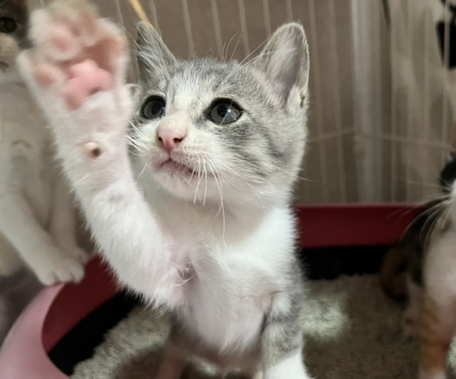 | 特徴(性格など) | ◎Twitterで、子猫達の様子を発信しています。ぜひ覗いてみてください。 https://twitter.com/rai_pasta ◎外見など サバ白の男の子。 兄弟の中では1番小柄です。 とても綺麗なグレーです。 尻尾は長くて真っ直ぐ。 まだ小柄で痩せているため、たくさん食べるように気をつけています。 今は身体のカビと、目を治療中です。 ◎性格 体は小柄ですが、好奇心旺盛。 おもちゃは大好きで、夢中になって遊びます。 母猫も人間好きなので、すぐ慣れてくれそうです。 兄弟の中でも1番早く慣れてくれそうです。 兄弟みんなと仲良しで、くっついています。 まだ人馴れ途中なことを理解してゆっくり見守ってくださる方、この子の家族になってくれませんか? ◎医療行為など ノミダニ駆除 猫カビシャンプー 目軟膏 |