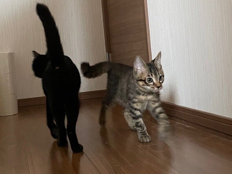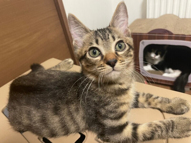 | 特徴(性格など) | 【仮名】さばのすけ 【生年月日】推定3~4カ月 【種類】MIX 【毛色】ブラウンタビー 【性別】オス 【去勢】未 【ワクチン】済 【駆虫】済 【健康状態】良好 【性格】とっても好奇心旺盛で、犬に飛びかかって走り回ってます(*^-^*)一緒にいるぺこのことを本当の母親と思っており(親戚)、甘えて眠たくなるとおっぱいを吸っております。そのため、ぺこ♀と一緒に希望してくださる方を優先いたします。 |